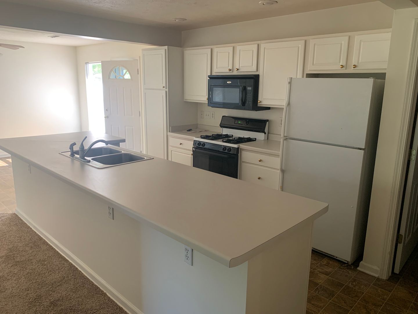 Large two bedroom, two bathroom apartment with big closets, large living room and kitchen/dining area, large pantry, walk-in shower in master, central air, attached garage, dishwasher, microwave, garbage disposal, full laundry room with washer/dryer hookups, oversized patio (first floor) and decks (second floor), vaulted ceilings and skylights (second floor).
